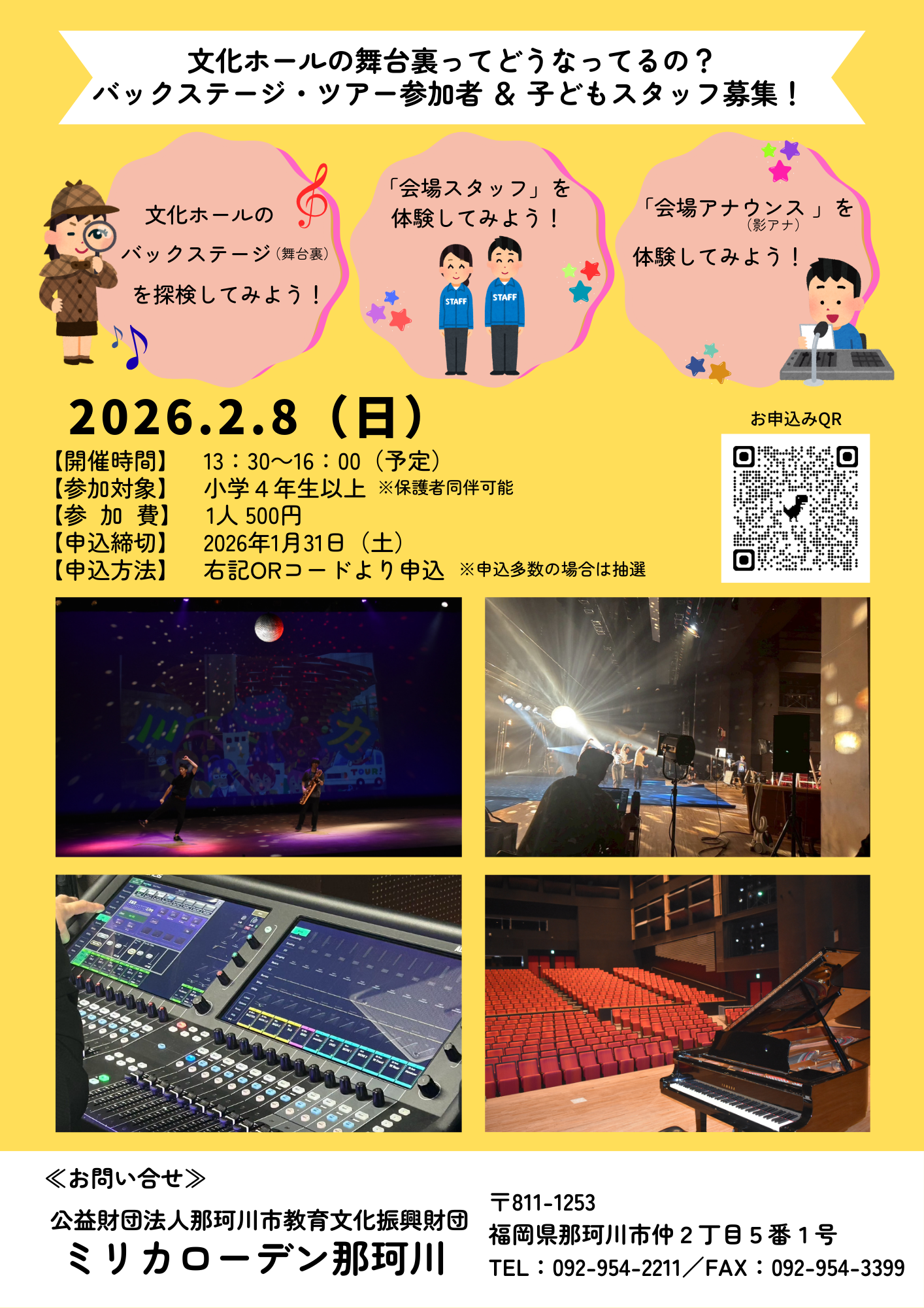 | 主催 | 公益財団法人那珂川市教育文化振興財団(ミリカローデン那珂川) |